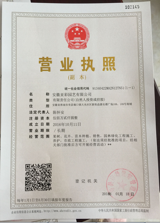 - 安徽亞彩園藝有限公司 隨著我國(guó)改革開(kāi)放的深入發(fā)展,一系列惠民政策的出臺(tái),新農(nóng)村建設(shè)的步伐加快,呈現(xiàn)出大眾創(chuàng)業(yè)、萬(wàn)眾創(chuàng)新的火熱局面。市場(chǎng)競(jìng)爭(zhēng)也變得越來(lái)越激烈;現(xiàn)代農(nóng)業(yè)怎么做,如何發(fā)展壯大?請(qǐng)您到安徽亞彩園藝有限公司來(lái)!我們是您真誠(chéng)的合作伙伴。 安徽亞彩園藝有限公司位于歷史文化名城“壽縣”城南9.8公里“窯口鎮(zhèn)現(xiàn)代農(nóng)業(yè)開(kāi)發(fā)區(qū)建業(yè)路”內(nèi),風(fēng)景秀麗的瓦埠湖畔,面積800畝。是專(zhuān)業(yè)從事優(yōu)良品種果樹(shù)、花卉、引...